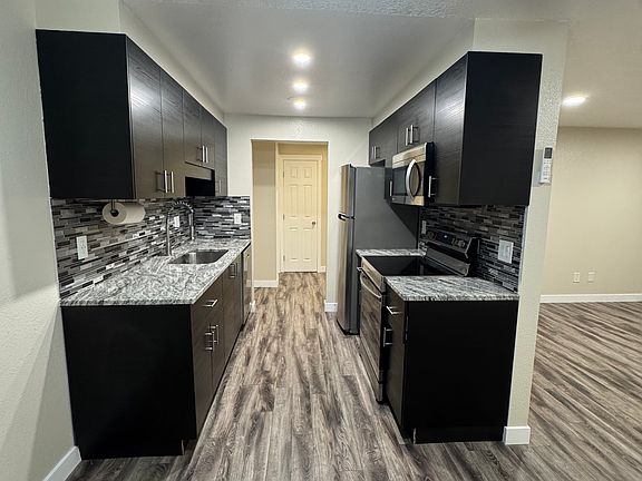 Move in ready unit, fresh paint, new carpet and appliances. New water heater. Heating and AC. Single car garage. Includes washer and dryer hook up ( washer and dryer shown in picture are available but tenant is responsible for the washer and dryer) A 10'x 16' shed tons of storage and electrical already installed in the shed. Beautiful concrete and grass backyard.