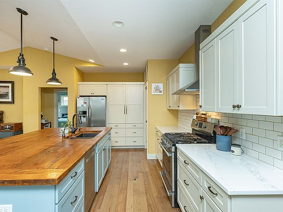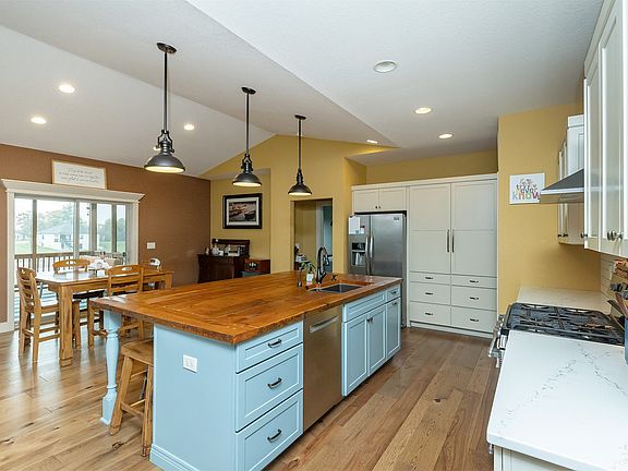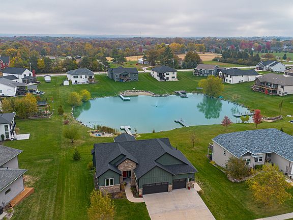 Welcome to this stunning 4 bedroom home in Huxley offering 2,780 sq ft of thoughtful living space. The main level features an open, light filled layout with engineered hardwood floors and vaulted ceilings that create an inviting, airy feel. The kitchen shines with high end cabinetry, a butcher block island, and stainless steel appliances. The living room boasts a cozy gas fireplace and large windows with serene pond views. The primary suite offers a spacious bedroom, walk-in closet, and beautifully finished 3/4 bath with dual sinks. Two additional bedrooms and a full bath complete the main level, along with a charming 3 season porch overlooking the pond. The finished walkout lower level is ideal for entertaining with a second living area, wet bar, 4th bedroom, office, laundry and full bath. Enjoy multiple outdoor hangout spaces including a screened-in deck, spacious deck, patio, and a cozy fire pit area overlooking the pond, perfect for relaxing evenings and gatherings. This property features direct access to a stocked pond complete with a fountain and private dock, one of only six homes in this highly sought-after community. From peaceful mornings by the water to the best 4th of July fireworks show in town right around the pond, this setting is truly special. Plus, an oversized heated 3-car garage gives you all the space and comfort you need for storage, hobbies, and more. The main level has W/D hookups. Don’t miss your chance to enjoy to own this remarkable property.