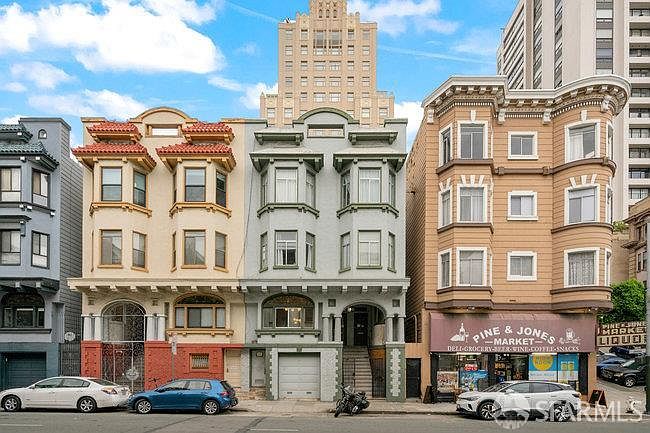 Video Preview! Near the top of Nob Hill is a unique opportunity: 1108-1112 Pine is, 4, well maintained classic San Francisco Units. The garage and lowest unit, 1112 Pine, are vacant. Step up to the original terrazzo stairs. Enter onto the hardwood floors and appreciate the period details. The living room with boxed beam ceiling and stained glass faces south. Through pocket doors to the dining room with a beautiful built-in. The updated kitchen includes a separate laundry porch. 2 rooms share a lightwell. The unit currently has One and One Quarter bath. 2 bedroom are on the back of the flat. The middle and upper units are leased and are current on their annual rent increases and deposit interest.