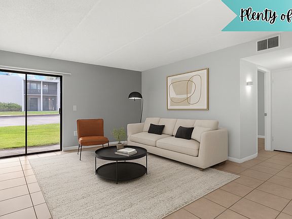 This comfortable 1-bedroom, 1-bathroom apartment with screened balcony is located in the heart of Lakeland and offers scenic views and a practical layout with tile flooring throughout, walking closets, The kitchen comes equipped with modern cabinets, refrigerator, stove, and exhaust hood