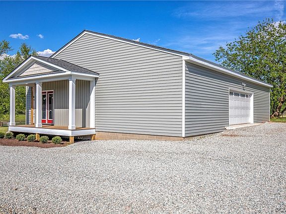 Completely Renovated Rancher is better than new! FULLY FENCED on a level 2 Acre Lot with a HUGE Detached Garage/Workshop!! The outbuilding has a front porch with pedestrian door, and a 16' side-entry garage door. The exterior offers a circular gravel drive, landscaped yard, concrete sidewalk, full front porch with columns, and a large deck out back. The Interior offers open-concept living with a beamed vaulted ceiling over the kitchen and family room. The kitchen is sure to please any chef with Quartz counters, a peninsula with bar, navy cabinets, pendant lights, recessed lights, stainless steel appliances and a pedestrian door that exits to the back deck. The laundry room is just past the kitchen and has plenty of room for shelving/storage. The vaulted family room has beautiful hard wood floors that flow into the kitchen and down the hall. The primary bedroom features 2 closets and private bath. There are 2 more bedrooms and another full bath as well. Everything as been replaced here...roof, window, HVAC, ducting, all plumbing, electrical, fixtures, doors, trim, porches/decks, insulation, appliances etc... DO NOT HESITATE!