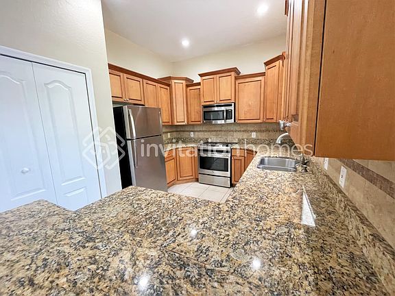 Please note, the total monthly rent is estimated to be $2384.90. This amount includes a base rent of $2240.00 and required leasing fees including Air filter delivery $9.95, Internet package $85, Smart Home with video doorbell $40, and Utility management $9.95. You deserve a quality home that you can shape to fit your personality. And here it is. You'll instantly feel at ease when you walk through this inviting entryway. Premium tile floors lead into an airy living space filled with natural light. Whether you're prepping food for the grill or making an afternoon snack, the kitchen will give you ample workspace to cook and entertain. The stainless-steel appliances, granite countertops, and premium cabinets deliver a refreshing look that your dinner guests will enjoy. A backyard perfect for any occasion awaits you in this beautiful home. There's plenty of space to set up your preferred furniture so you can lean back, relax and let the day's stress fade away. Your pets will thrive behind a privacy fence that also blocks out the sights and sounds of the neighborhood. Apply online today! This home is located within the service area where our internet package is required, it will be equipped with high-speed internet and media streaming capabilities at just $85 per month, a great value. This monthly fee will be required in your lease. At Invitation Homes, we offer pet-friendly, yard-having homes for lease with Smart Home technology in awesome neighborhoods across the country. Live in a great house without the headache and long-term commitment of owning. Discover your dream home with Invitation Homes. Our Lease Easy bundle which includes Smart Home, Air Filter Delivery, and Utilities Management is a key part of your worry-free leasing lifestyle. These services are required by your lease at an additional monthly cost. Monthly fees for pets and pools may also apply. Home Features and Amenities: Air Conditioning, Fenced Yard, Garage, Granite Countertops, Long Lease Terms, Patio, Pet Friendly, Recessed Lighting, Smart Home, Stainless Steel Appliances, Tile, W/D Hookups, and professionally managed by Invitation Homes. Invitation Homes is an equal housing lessor under the FHA. Applicable local, state and federal laws may apply. Additional terms and conditions apply. This listing is not an offer to rent. You must submit additional information including an application to rent and an application fee. All leasing information is believed to be accurate, but changes may have occurred since photographs were taken and square footage is estimated. See InvitationHomes website for more information. Beware of scams: Employees of Invitation Homes will never ask you for your username and password. Invitation Homes does not advertise on Craigslist, Social Serve, etc. We own our homes; there are no private owners. All funds to lease with Invitation Homes are paid directly through our website, never through wire transfer or payment app like Zelle, Pay Pal, or Cash App. For more info, please submit an inquiry for this home. Applications are subject to our qualification requirements. Additional terms and conditions apply. CONSENT TO CALLS & TEXT MESSAGING: By entering your contact information, you expressly consent to receive emails, calls, and text messages from Invitation Homes including by autodialer, prerecorded or artificial voice and including marketing communications. Msg & Data rates may apply. You also agree to our Terms of Use and our Privacy Policy.