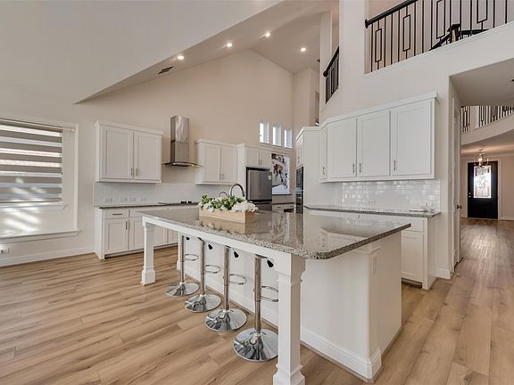 Experience refined living in this stunning 5-bedroom, 4-bathroom home that blends modern sophistication with everyday comfort. From the moment you step inside, you're welcomed by an expansive open-concept layout featuring a spacious living area anchored by a stylish fireplace and a gourmet kitchen complete with granite countertops, a central island, and high-end finishes throughout. A striking wrought iron staircase leads you upstairs to two versatile bonus spaces—perfect for a game room, media room, or home office setup. Whether you're entertaining or unwinding, there's space for everyone. Nestled in a sought-after community just minutes from the best of North Texas, this home offers the perfect mix of privacy and convenience. The eco-conscious design includes solar panels, dramatically reducing electricity bills—especially valuable during those hot Texas summers! Motivated Seller