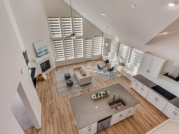Stylish fireplaceHigh-end finishesGranite countertopsCentral islandGourmet kitchenWrought iron staircaseVersatile bonus spaces