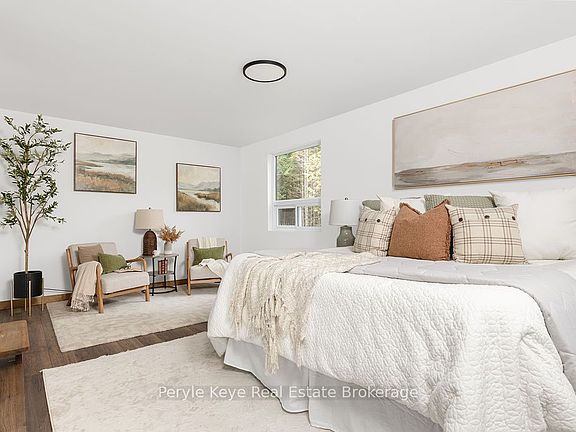 What if adventure wasn't a trip you planned but part of your everyday life? Perfectly positioned between Huntsville (20 km) and Burks Falls (13 km), 1108 Skyline Drive is tucked on nearly 5 acres and surrounded by natural beauty. A pond shimmers beyond your door, trails wind through the trees, and adventure is always close -hike Algonquin Park, fish in nearby Three Mile Lake, snowmobile from your property, or skate on your pond. Here, life outdoors feels effortless. Every inch of this 3-bed, 2-bath home has been thoughtfully updated with a new septic system (2023) and a fully insulated, heated garage (2020), adding comfort and peace of mind. Inside, every detail has been reimagined with a new kitchen, renovated bathrooms, new windows and doors, soundproof insulation, and laminate flooring throughout. The screened Muskoka room is ideal for morning coffee or quiet afternoons by the pond. The kitchen blends beauty and practicality with modern finishes, stainless steel appliances, and a propane stove. Living spaces flow naturally, open yet intimate, perfect for relaxed weekends and effortless entertaining. A propane furnace and electric wall heaters ensure year-round comfort. Two guest bedrooms, a 4-pc bath, and a versatile sitting area offer space to gather and unwind. The primary is spacious and serene, complete with a 4-pc ensuite and space to create the walk-in closet you've always wanted. Outside, the detached garage is more than storage - a light-filled hub for projects and adventure, plus a 40-amp rough-in ready for an EV charger. Additional highlights include a drilled well, Starlink internet, a pond-fed irrigation system, and a 38-module building with a pilot-light propane furnace that requires no electricity. Here, the pace slows. The air feels different. And every season brings something new. 1108 Skyline Drive - where adventure begins, and where you'll always want to come home.