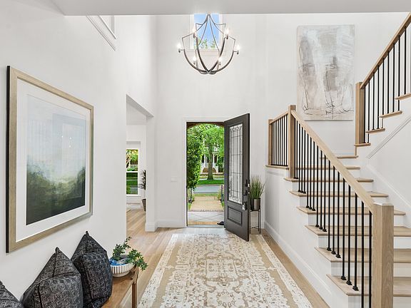 Experience luxury in this newly renovated home professionally and exquisitely designed to mirror a French country estate. Located on a highly coveted corner fountain lot, this property boasts brand-new 5” solid hardwood floors and new staircase with custom design elements throughout. The chef's kitchen features a 48-inch gas range double oven Italian cooking and an innovative remote-control backsplash into a full-service chef’s pantry, with dual sinks and dishwashers for top-notch entertainment service! Each bathroom showcases unique tile work and designer lighting, enhancing a modern yet classic appeal. Enjoy the open and inviting layout, with large windows framing private and serene views while flooding the space with natural light. A large entryway invites you to an office or formal dining space or have guests join in an intimate bourbon room featuring double doors to a large front porch. Oversized 3 car garage, fresh sod and mature landscape make this an ideal luxurious retreat.