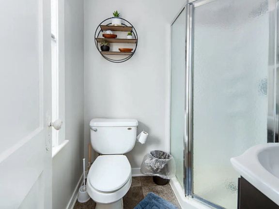Modern cozinessOld school charmTiled bathroom