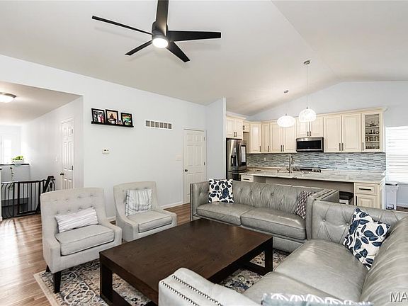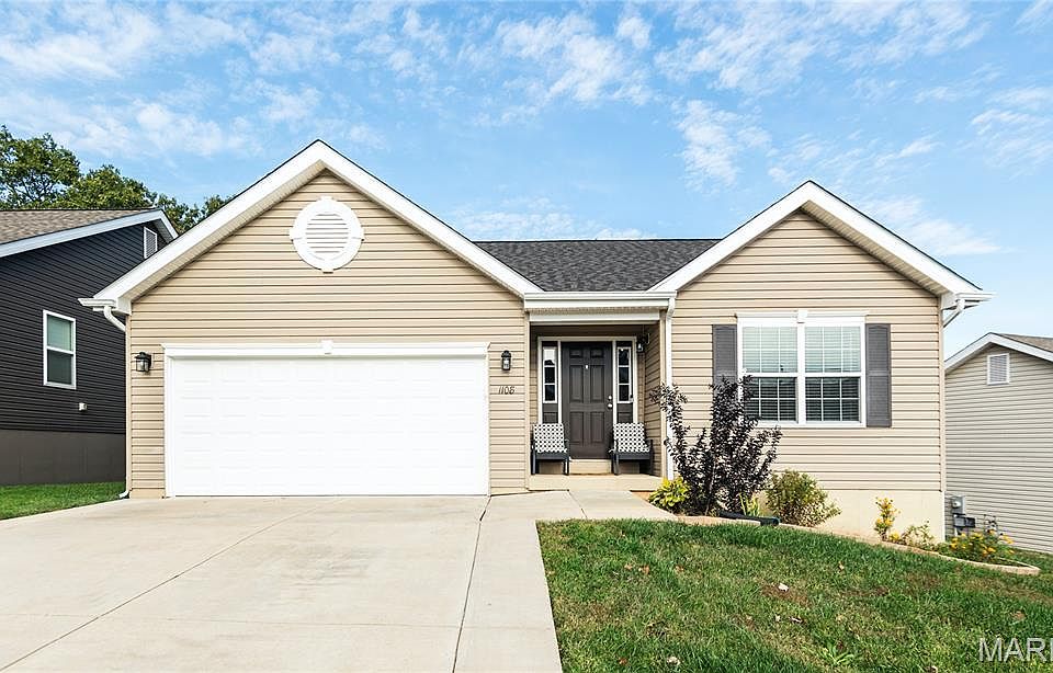 Welcome to this beautiful and updated 7 year old home in the Huntington Glen subdivision. This 3 bedroom, 2 bathroom home includes many updates since it was built. The upgrades include a luxury kitchen with 42" soft-close cabinets, oversize island with seating, custom backsplash, white marble countertops, stainless steel appliances, beverage refrigerator and a walk-in pantry. The living area is an open floor concept with vaulted ceilings and upgraded hardwood floors. The primary bedroom features a walk-in closet and a full bathroom with shower. Two additional bedrooms, a full bathroom and laundry room complete the main level. Freshly painted walls and ceilings truly make this home move-in ready. The unfinished basement is roughed in for a full bathroom, and includes an egress window for a future bedroom and plenty of storage space. Additional upgrades include a new roof (2025) and extended driveway. The backyard overlooks trees that can be enjoyed from the covered patio. Schedule your private showing to experience this beautiful home for yourself.
