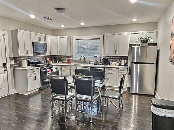 Original hardwood floorCustom tile workBlack stainless steel appliancesRecessed lightingOversized hallwaysQuartz countertopsLandscaped level lot