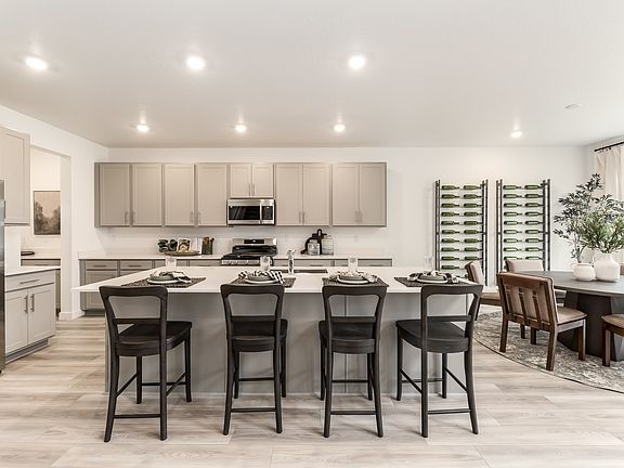 Brixton Park - 238 - Teton. Ask about our rate buydowns when financing through Lennar Mortgage! Estimated completion in December. This plan features 5 bedrooms, 3 bathrooms, a 3-bay garage, and a full unfinished daylight basement! On the main floor, you will find a spacious family room, a large kitchen with white craftsman style cabinets, quartz countertops and stainless steel appliances including gas range and refrigerator, plus, a spacious guest bedroom and full bathroom. The second floor has 4 bedrooms including the owner's suite, and a secondary full bathroom. Square footage figures are provided as a courtesy estimate only and were obtained from builder. Buyer is advised to obtain an independent measurement. Interior photos are of same style of home but not actual home.
