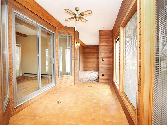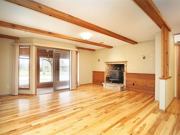 This unique single passive solar home takes advantage of green suburban living! A massive sun filled solarium welcomes you in to this nicely appointed home and provides an extra bonus for relaxing or entertaining. Step inside to an open concept floor plan. The large living room is flooded with light and flanked by hardwood floors. A beautiful brick wood burning fireplace centers this space and is perfect for those brisk nights. The fully applianced kitchen is stocked with cabinet and looks over the landscaped yard. Tucked around the living space you will find a full bathroom with first floor laundry, a HUGE master bedroom with double closets and patio doors that lead to the solarium, as well as a second bedroom. The lower level is finished to include a supersized recroom room and a second full bath. Additional features include: attached 2.5 car garage with attached storage area, and ductless central air. Buy in confidence this home comes pre-inspected and offers a 1 year HMS Home warranty.