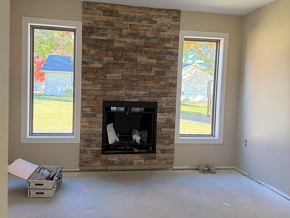 This brand new, three-bedroom home on a slab offers contemporary living in a convenient location, situated directly across from Edward Stone Middle School and near both Notre Dame School and Burlington Community High School. The residence features an open floor plan complemented by an additional family room, which is enhanced by a charming stone accent gas fireplace. A door from the family room provides direct access to the outdoor patio and backyard area. The primary bedroom is a comfortable suite complete with a walk-in tiled shower. The two additional bedrooms are thoughtfully positioned at the opposite end of the house, adjacent to a large guest bathroom. For added convenience, the home includes a main floor laundry and an oversized attached garage. This home has a 10 Year tax abatement.