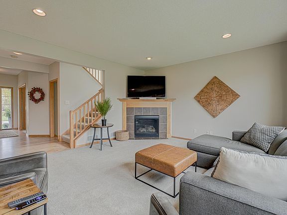 Tucked into a prime cul-de-sac corner lot, this home offers the perfect blend of space, style, and flexibility! The open-concept main level is designed for entertaining, featuring newly finished hardwood floors, a cozy gas fireplace, and a spacious kitchen with new stainless steel appliances—including a double oven—ample cabinet space, pantry, quartz center island, and a custom breakfast bar overlooking the living room for extra seating. French doors open to a versatile bonus room, ideal for a home office or additional sitting area—ready to adapt to your lifestyle. The newly finished lower-level family room is perfect for movie nights, complete with a fireplace, projector, and screen. Upstairs, you’ll find four bedrooms on one level, including a spacious primary suite with private bath. A convenient laundry room and a loft—ideal for work, play, or relaxation—round out the upper floor. Step outside to enjoy the spacious backyard from the partial walkout on the south side or the maintenance-free deck. With newer mechanicals, a recently updated roof, and no association dues, you’ll enjoy peace of mind in this stunning, move-in-ready home—just minutes from walking paths, great schools, shopping, and restaurants!