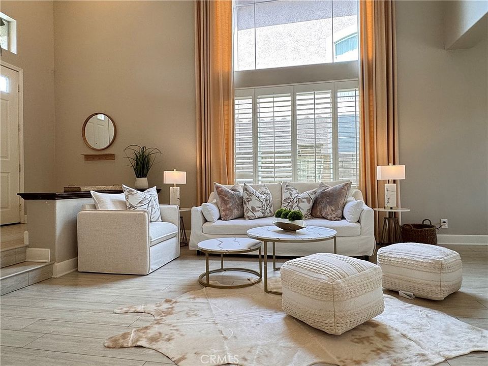 Spacious Living: Open floor plan with vaulted ceilings, abundant natural light, and tastefully curated modern furnishings.