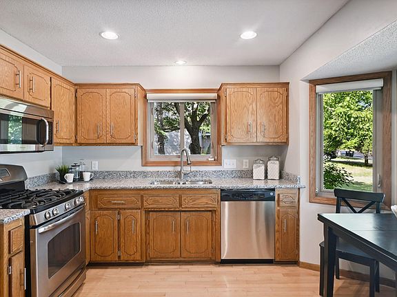 **OFFERS DUE by 5pm on Saturday, July 29th** Don't miss this beautifully updated 4BR Champlin home situated on a fully-fenced large corner lot! Sunny eat-in kitchen features new granite countertops and sink, S/S appls, and abundant cabinetry. Dining area opens to a brand new 12x12 maint-free deck. Maple hardwood floors on main level. All carpet is new. New LVP in LL. Fresh paint throughout. Large primary BR features a walk-in closet and sitting area. Enjoy relaxing in your very own cedar sauna w/ dedicated shower. Fenced yard features a fire pit and storage shed. Concrete driveway. Oversized 2-car garage. Easy access to Hwys 169 and 610. Home sits between Elm Creek Park Reserve and the Mississippi River. Satisfy all your outdoor, shopping, and restaurant needs in minutes!