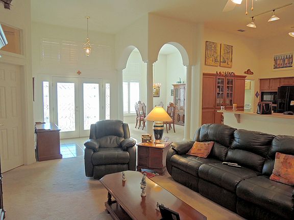 The Essence of Florida exudes in the Beautiful Monaco; This one offers a Summer Kitchen w/grill, sink & refrigerator on the signature wrap around Lanai with Total privacy provided by the luscious hedge behind. Newer Maytag washer and Dryer; The Dream Kitchen includes Corian counter tops and Oak Cabinets w/roll-out shelving and center island; Convection Wall oven & range.;Large Built-in entertainment center in the Morning room with bay window. Over sized Master Suite w/french doors opens onto the Lanai; Master bath has 2 person walk-in shower and built-in clothes hamper. Water softener, Central Location in The Fountains, Close to the Palm Grove recreation Area.