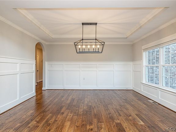 - Description: HWD, Tray ceilings, wainscoating, double crown,