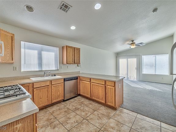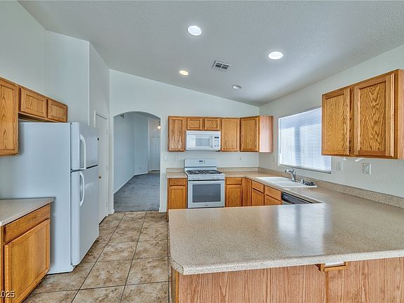 Welcome to this beautiful and spacious three-bedroom, two-bathroom home that perfectly combines comfort, style, and functionality. Step into the bright and airy front living room featuring vaulted ceilings and plenty of natural light an ideal space for relaxing or entertaining guests. The well-appointed kitchen boasts a charming garden window, vaulted ceilings, ample cabinetry, pantry storage, and easy flow into the separate dining area, which opens directly to the backyard perfect for indoor-outdoor living. The large primary suite includes vaulted ceilings, a generous walk-in closet, and an ensuite bathroom complete with a tub/shower combo and a dedicated makeup vanity. Enjoy warm afternoons or evening gatherings in the expansive backyard with a paved patio, mature shrubs, and room to garden or play. This home offers the perfect blend of tranquility and convenience don't miss your chance to make it yours!