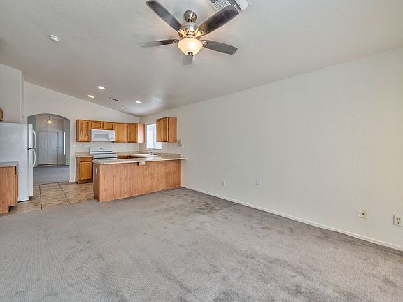 Welcome to this beautiful and spacious three-bedroom, two-bathroom home that perfectly combines comfort, style, and functionality. Step into the bright and airy front living room featuring vaulted ceilings and plenty of natural lightan ideal space for relaxing or entertaining guests. The well-appointed kitchen boasts a charming garden window, vaulted ceilings, ample cabinetry, pantry storage, and easy flow into the separate dining area, which opens directly to the backyardperfect for indoor-outdoor living. The large primary suite includes vaulted ceilings, a generous walk-in closet, and an ensuite bathroom complete with a tub/shower combo and a dedicated makeup vanity. Enjoy warm afternoons or evening gatherings in the expansive backyard with a paved patio, mature shrubs, and room to garden or play. This home offers the perfect blend of tranquility and conveniencedon't miss your chance to make it yours!