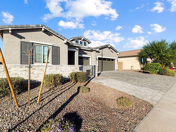 Welcome to your dream home! This beautifully upgraded residence offers an ideal blend of luxury, comfort and modern elegance. With over 2830sqft of spacious living space 4-bedrooms,3.5-bathrooms this corner- lot home has been thoughtfully designed and meticulously maintained. An open-concept layout that flows effortlessly from the spacious living room to the gourmet kitchen. The kitchen is a chef's dream, featuring quartz countertops, custom cabinetry, a large island, upgraded GE stainless steel appliances, and a nice sized pantry that keeps everything tidy and within reach. Whether you're cooking for the family or entertaining guests, this kitchen is true showstopper. Retreat to your spacious master suite, complete with a spa like en-suite bathroom with dual vanities and a walk-in shower. This home includes a second primary suite with an adjacent living room, perfect for multi-generational living. Additional generously sized bedrooms offer plenty of room with jack and jill bathroom fully upgraded with modern finishes. Step outside to enjoy the Arizona lifestyle year-round. The backyard boasts a covered patio, lush green turf, and desert landscaping that's both beautiful and low maintenance. Whether you're hosting a weekend barbecue or unwinding under the stars, this space is built for memories. Located just minutes from major highways, top-rated schools, shopping centers, this home puts you close to everything while offering a peaceful retreat from the bustle. This home has lots of upgrades and is ready for your next chapter. Don't miss the opportunity to make it yours!