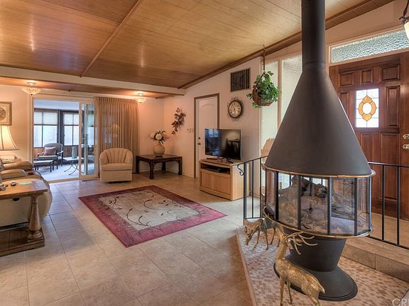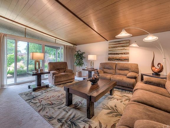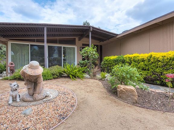 Shadow Hills Adj. Classic Mid Century in Immaculate Condition*Located on over 9,000 sq.ft. lot*Gated*Professionally Landscaped, Lush gardens with meandering paths in Quiet Shadow Hills neighborhood*Vibrant Stone walkway to front door porch with leaded glass windows*Living Room with Step Down Family Room and freestanding 360 degree glass fireplace*Sliders out to sun room and side and back yard*Kitchen with stone counter tops*Wall to Wall Pantry and Breakfast/Dining*Open and Spacious feel*Vaulted wood ceilings throughout*Newer Windows/Sliders throughout*Stone/Carpet/and Tile floors*Central HVAC*Master with own full bath and mirrored wardrobe*Sliders out to large yard with garden and Pool*Laundry hook ups in over sized 2 car direct access garage with ample storage*