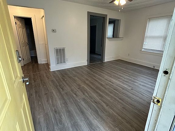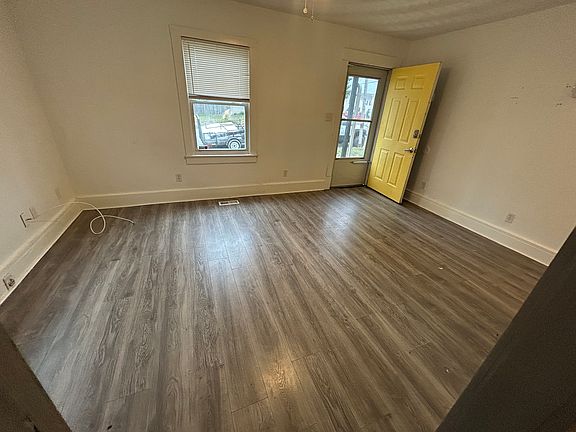Tenant recently moved out, and cosmetic repairs to be made this week. Viewings are limited to QUALIFIED APPLICANTS; you must apply. Laminate floors throughout with carpet in the bedrooms. Ceiling fans in the livingroom and bed rooms. Washer and dryer hookup available. Washer and dryer left behind by previous tenant. Large yard. Tenant NOT responsible for lawn maintenance.