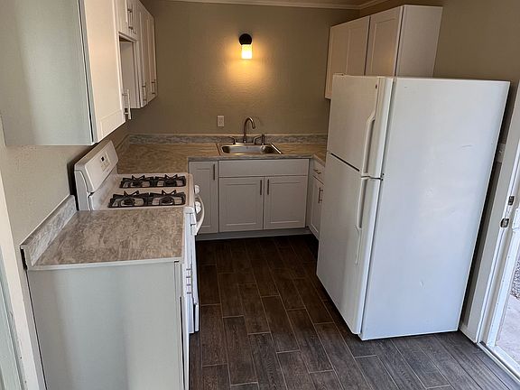 Centrally located in the heart of Alamogordo, this cozy 1 bedroom, 1 bathroom home has been completely remodeled from top to bottom. The bathroom features a new tub with tile shower walls, new vanity, mirror, and toilet. The kitchen shines with new white shaker cabinets, a gas stove, and refrigerator. Fresh paint on the ceilings and walls, along with new tile flooring throughout, gives the space a bright and modern feel. Energy-efficient double-pane windows help keep utility costs low. Outside, enjoy a covered patio and an extended driveway offering plenty of parking. Conveniently located near shopping, dining, and main road access, this home offers comfort, style, and easy living move-in ready in November!