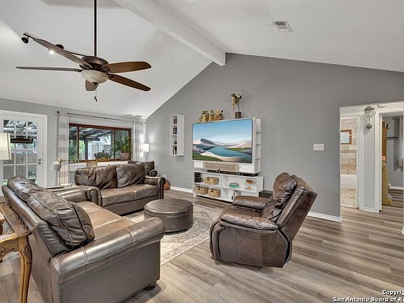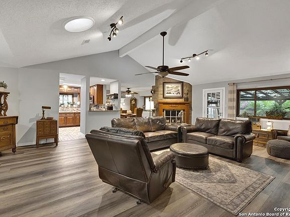 This beautifully renovated home situated in the serene and picturesque subdivision of Woodland Oaks in Schertz offers the perfect blend of comfort and style. This 3 bedroom, 2 bath home has been exceptionally cared for, evident in both its condition and recent upgrades. It is a true gem, exuding warmth and character in every corner. The entry opens to a spacious family room with wood burning fireplace which serves as the heart of the home. The kitchen offers a functional design with ample cabinetry for storage, farmhouse sink, wet/coffee bar, granite countertops and undercabinet lighting. The primary bedroom is set apart from the secondary bedrooms offering privacy. Additional highlights include a new roof 2020, HVAC replaced in 2023, Water Heater 2021, New Flooring, NO CARPET, new windows throughout 2013, sprinkler system, 2 skylights, EV charging receptacle, upgraded electrical with whole house surge protector and much more. Conveniently located close to all amenities and major thoroughfares with quick access to RAFB and a smooth commute to downtown San Antonio and Austin! The HOA amenities are a dream with a pool, tennis courts, a volleyball court, basketball court, clubhouse, and a playground in the Recreation Center. Come see this one before someone else calls it home!