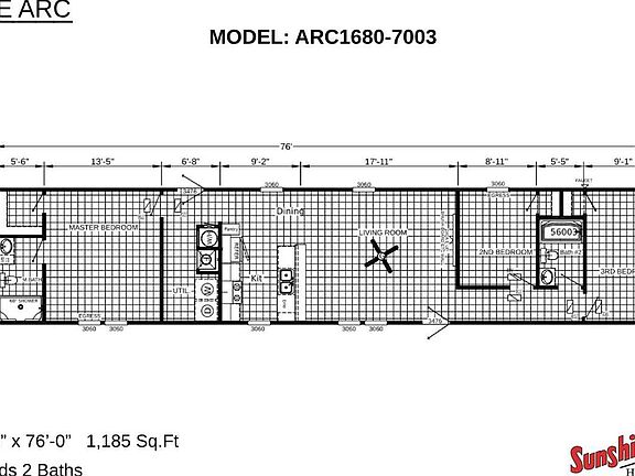 Step into this brand new Sunshine Homes Arc 7000 ARC1680-7003, a home that offers a warm, welcoming space ideal for community living. This charming 1,185 square foot manufactured home features three bedrooms and two bathrooms, thoughtfully designed for comfort and connectivity. With an open floor plan that melds the kitchen, dining, and living areas, it's perfect for gatherings and everyday living. Tailored for those seeking a relaxed lifestyle, this home includes energy-efficient features and stylish finishes, making it a fantastic choice for your new community setting.