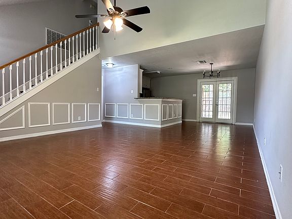 This beautiful, well maintained home is located on a quiet Cul de Sac in the private subdivision of Windsong. The interior features an open layout with high ceilings, neutral paint, wood-look flooring throughout, granite countertops, stainless steel appliances, modern light fixtures, and large bedrooms, all with ceiling fans. Primary bedroom is downstairs and has a spacious walk in closet. French doors off the dining area lead to the large, fully fenced backyard. With no back neighbors, this space offers peace and privacy. Mature trees and a covered patio provide plenty of shade for outdoor entertaining. Close proximity to downtown Conroe. Currently undergoing a few renovations. Expected to be available Dec 1st.