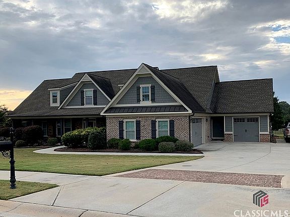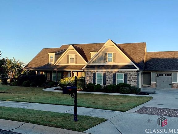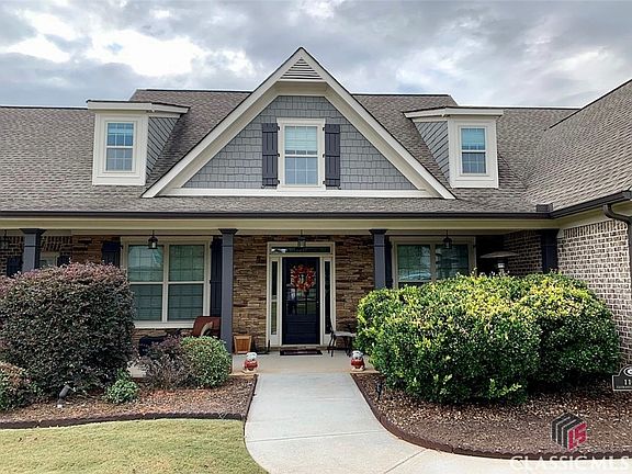 Brookhaven Craftsman Ranch in Oconee Gated Community. 3-sided brick/stone on .69 acre level lot leading to neighborhood cul-de-sac. Covered front porch welcomes you to this spacious one-level home. 4BR 3.5 BA with main garage plus covered breezeway to additional garage. Open floor plan with plenty of space to entertain with ease. Formal dining room w coffered ceilings open to great room and easy access to kitchen. Vaulted great room with wall of windows, built-ins, stone fireplace w gas logs. Kitchen is where the heart is... ample room with granite countertop, tile backsplash, island, walk in pantry, all appliances including refrigerator, dishwasher, gas cooktop, wall oven and microwave. Mahogany bar with marble countertop will remain. Cozy up to 2nd fireplace in keeping room off kitchen plus ext door to covered patio. Master suite is spacious with its own access to covered patio and large trey ceiling. Master Bath has been updated with popular free standing claw foot tub, Spanish tile floor, large shower updated with marble flooring and seat, plus separate vanities, walk in closet and linen closet. 2nd and 3rd bedrooms share Jack n Jill bath. Large 4th bedroom / Bonus/ Anything you want... is above garage. Full walk in closet and Full bath as well. LVP wood flooring replaced throughout entire home. If you enjoy outdoors, patio has been extended and covered for maximum enjoyment, lots of room to grill, chill, soak in hot tub or watch football! (hot tub, pergola and tv will remain). Club Estates is located in popular area of Oconee county. Gated community provides pool, tennis, 2 story club house with downstairs pool table & game room. Also, enjoy pond with large bridge, playground area and walking trails. Irrigation system. Neighborhood has 72 homes and streets have all been re-paved. Sunrise greets you at front of house and ends the day with you on backside of home. Conveniently located to Hwy 316 and 78, shopping, dining and schools.
