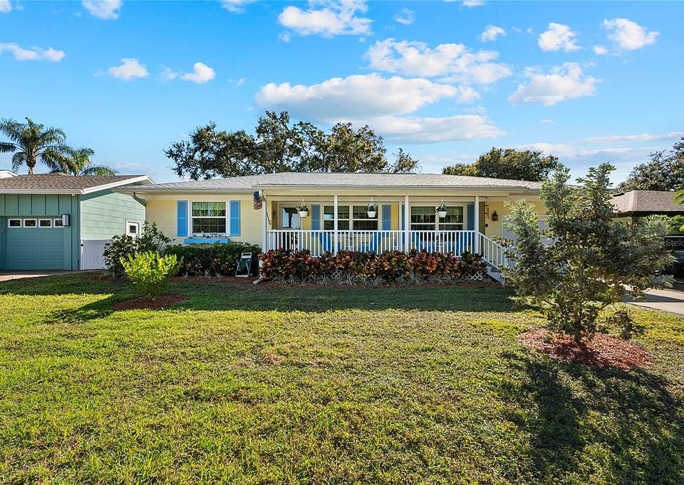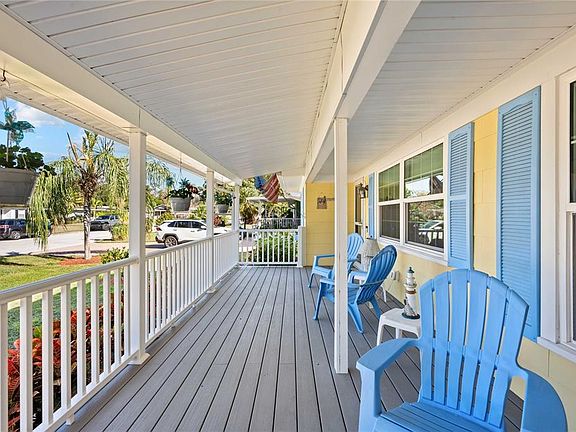 Quaint single-story home just a short walk from the Intracoastal Waterway! Beautiful curb appeal with and an inviting front porch, with maintenance free Trex decking and vinyl railing, beckons you to step inside and see what else this lovely home has to give. When you enter, you will find beautiful wood floors that flow throughout the entire home, creating warmth and continuity. The spacious living room is filled with natural light and opens to two distinct wings of the home. On one side of the home, you’ll find two generously sized bedrooms featuring ceiling fans and well-designed closet storage, along with a full bathroom and ample hallway storage. Updated louvered closet and entry doors with a natural wood finish complement the space, while elegant woodwork throughout the family and dining rooms adds timeless character and warmth. The open, updated kitchen showcases custom hardwood cabinetry with convenient pull-out storage, updated stainless steel appliances, and a fully functional center island that enhances both workspace and seating. A sunny breakfast area makes this kitchen ideal for casual dining and entertaining. Tucked away for privacy, the owner’s suite is a true retreat, featuring recently updated wood flooring, a walk-in closet, and double-pane French doors direct private access to the backyard deck and spa from the primary bedroom. The en-suite bath includes an oversized step-in, fully tiled shower and an updated vanity, offering both style and functionality. Wood flooring in the primary bedroom has been recently updated. Recent improvements include electrical feed, wiring, and main circuit breaker, along with the addition of the backyard deck and spa. The extra-large, fully fenced backyard is perfect for entertaining and offers plenty of room for a future pool. Enjoy an unbeatable location—walk to the waterfront in under five minutes and take advantage of close proximity to Clearwater Harbor, Clearwater Beach, Dunedin Blue Jays Stadium, and the Pinellas Trail. Ask your agent to share all the updates to this home which are available in the listing's attachments. Major system updates provide peace of mind, including a roof replacement in 2022, AC/heating system installed in 2018, and a hot water heater replaced in 2019. There are just too many to list here! Schedule your private showing today.