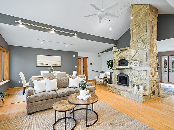 This is your opportunity to own a piece of heaven on the crystal clear waters of Lake of Bays in the coveted south shore where generations have cherished this historic community. Tennis Club, Sailing Club, Bigwin Island fine dining & amazing golf, picture perfect panoramic lake views & stunning sunsets are all here waiting for you & your family! Enjoy over 3,000 sq.ft. of warm & inviting living space featuring 3 bedrooms, 3 baths & an open concept layout perfect for entertaining! The kitchen is a culinary dream providing lots of cupboards, SS appliances, breakfast bar & expansive windows. The living and dining room boast hardwood floors, cathedral ceilings plus floor to ceiling windows where you are immersed in nature. This space is anchored by a custom stone wood burning fireplace with pizza oven & built-in bench. The spacious Muskoka room is a great space to share stories, read a book or simply delight in the peaceful surroundings. Large primary suite is complemented by the spa-like 4-piece ensuite & walk-in closet. You will also find an office with built-in desk & shelving, main floor laundry plus a powder room off the welcoming foyer. Lower level offers a large recreation/media room complete with projector, built-in wine coolers, gas fireplace & walk-out. 2 guest bedrooms, 4 piece bath, marvelous sauna & steam shower, utility room & loads of storage on this level. Detached 2-car garage includes an incredible bonus room above with gas fireplace & 3 piece bathroom ~ ideal space for a games room or additional guest accommodations. The enchanting perennial gardens, patio & stone walk way add perfect harmony to this spectacular offering. Other features include a drilled well, full home generator, irrigation system, paved driveway & loads of parking. Great dock with storage, 101 feet of natural shoreline and undeniably spectacular lake vistas ~ come discover the peaceful ambiance of this Lake of Bays treasure!