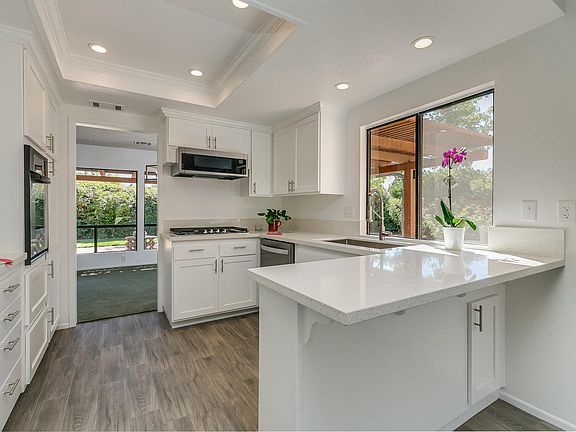 Enjoy an Ojai lifestyle in this single story Spanish home, only a few minutes from the village in Ojai. You can simply move in to this beautifully upgraded home with great curb appeal and a new paver driveway. The sparkling kitchen is bright and airy with beautiful quartz countertops, and has a breakfast room for informal dining in addition to the more formal dining room. The master suite is spacious and offers two closets and an attached bathroom. The light filled open concept living room highlights the vaulted ceilings, a fireplace & a set of glass doors that spill out to the backyard. Plus, there is a den or home office for added space! You'll love the splendid mountain views of Ojai's Topa Topa mountain range. Mature trees and attractive landscaping complete the sheltered grounds. Great golfing, hiking, biking, dining and shopping nearby. This is a fantastically upgraded home in a great neighborhood!