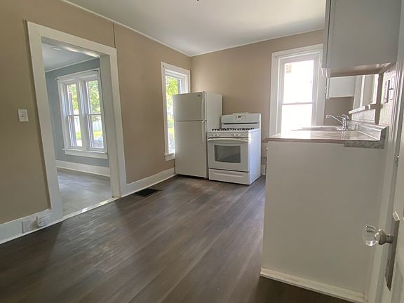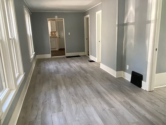 This is the lower unit of an upper/lower duplex. It offers 2/3 bedrooms and 1 1/2 baths with full tub and shower in main bath, and a large living room. It is a very spacious unit that has been completely updated including new flooring throughout. It has an enclosed front porch which could be used as a mud room for coats and shoes, keeping the dirt and grime off your floors, shaded side yard, off-street parking and front and back door entrances. It is located on the City Bus line near downtown. Trash service, lawn care and snow removal all included in monthly rent.