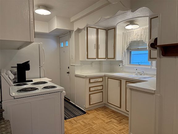 A very unique home layout with character! Upon entering the home from the front deck is the living room. To the back of the home is the eating area and kitchen. To the left of the front door is about 5 steps up to a bedroom and a full bath. Up another set of steps is the 2nd bedroom. You can access the basement from off the kitchen; there are laundry hook ups here as well as a door that leads to the out to the back of the house. You can also access backyard from the back door. The backyard is fenced, has a shed and a 2-car garage with one car stall. This affordable house is just waiting for your personal touch!