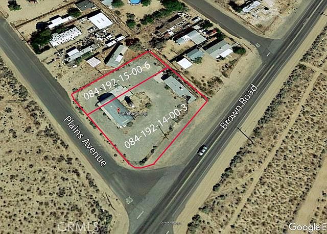 Two parcels of land; APN's 084-192-14-00-3 and 084-192-15-00-6 with accessory structures at the corner of Plains Avenue and Brown Road in Inyokern, CA. The property was previously used as as a materials storage area. Property is less than two miles from the Inyokern Airport.