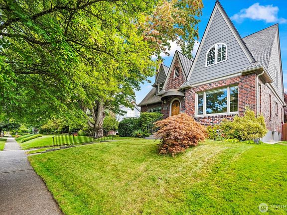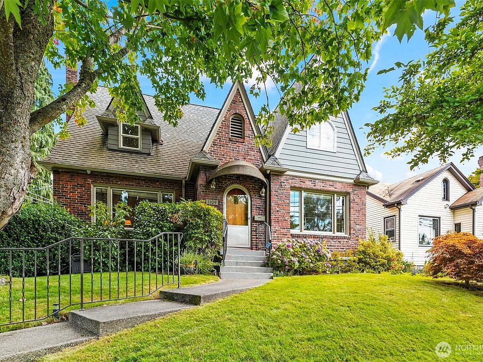 Charming clinker brick Tudor in the heart of the UPS neighborhood! Features a unique rounded front door, oak floors, original mahogany trim, arched doorways, and coved ceilings. Cozy gas fireplace and new A/C (2021). Generous main floor bedroom. Double-pane windows with classic leaded-glass style. Spacious kitchen with breakfast nook, white shaker cabinets, stainless appliances, and subway tile. Enormous primary bedroom upstairs with walk-in closet. Additional bonus room on lower level offers many uses for flex space. New water heater and gas furnace. Enjoy the enclosed backyard with mature landscaping, large patio, leaf-guard gutters, and sprinklers front and back. New Hardie siding and more!