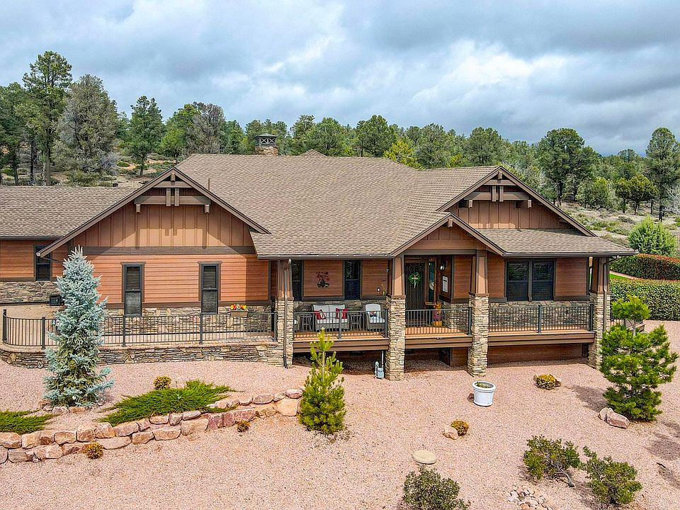 Amazing single level well crafted home built by WTM Construction and backing to National Forest awaits you. This beauty boasts many upgrades and is a must see. Construction is 2X6 with foam insulation for energy efficiency and zoned with 2 heat pumps. Doors are all 8' knotty alder and all windows have wood casing. Upon entering the foyer you will notice the warm engineered hard wood hand honed flooring throughout with tumbled stone in all the wet areas. Kitchen is a chef's delight featuring solid wood soft close cabinets with pullouts everywhere, gorgeous granite, 6 burner NXR gas stove with double ovens, farm sink, and a large walk in pantry. A beautiful gas fireplace in the great room is highlighted with stone from floor to ceiling and has built in cabinets on either side. All bedrooms have their own private baths and all rooms have ceiling fans. The home is equipped with central vac, a tankless water heater, a citrus soft water system, a whole house water conditioning system, and reverse osmosis. Siding on the home is a 17 year stained concrete board and roof is a 50 year GAF shingle. Wonderful front porch is upgraded trex with a wrought iron railing and driveway, back patio, and all walk ways are pavers. The back yard is where the time is spent with a large area covered in turf for pets or playing corn hole. A large covered patio with fans and built in speakers provide the best in entertainment for friends and family. Garage is oversized with epoxy flooring and has many built in cabinets. This home will check every box and even those you didn't know you wanted.