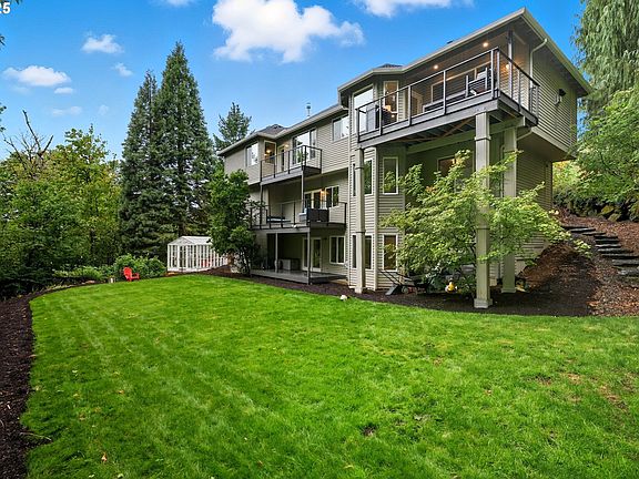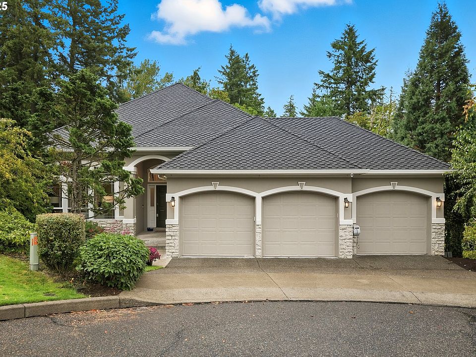 Custom-Built Forest Heights Home with a Level Backyard! Tucked away on a quiet cul-de-sac, this spacious daylight home provides 3 levels, each with its own deck, privacy and major updates. Step inside to soaring recessed ceilings, luxury vinyl plank flooring throughout, and an abundance of natural light. The main-level primary suite overlooks a serene backdrop of trees off of a private deck and features a spa-inspired ensuite with a soaking tub, walk-in shower, and walk-in closet. A second main-level bedroom with French doors offers flexible use as a guest room or office. Plus, enjoy the convenience of a fully-equipped laundry room on the main level. The kitchen features quartz countertops, stainless steel appliances, pantry, and breakfast nook, flowing seamlessly into the family room with a gas fireplace, which opens to a covered TimberTech deck—perfect for year-round outdoor living. On the second level, two additional bedrooms (one with a bay window and ensuite bath) share a versatile loft-style living space. The lower daylight level offers even more flexibility with a flex space ideal for a home gym, a bedroom with ensuite, generous storage, and sliding doors that lead to the level backyard with a greenhouse wired with electricity—a rare find that feels private and backs to beautiful trees and woods. A 3-car garage, low HOA, new roof, and recently updated HVAC add peace of mind. This home is the perfect blend of nature, space, and modern convenience. Come see it for yourself! [Home Energy Score = 1. HES Report at https://rpt.greenbuildingregistry.com/hes/OR10242177]