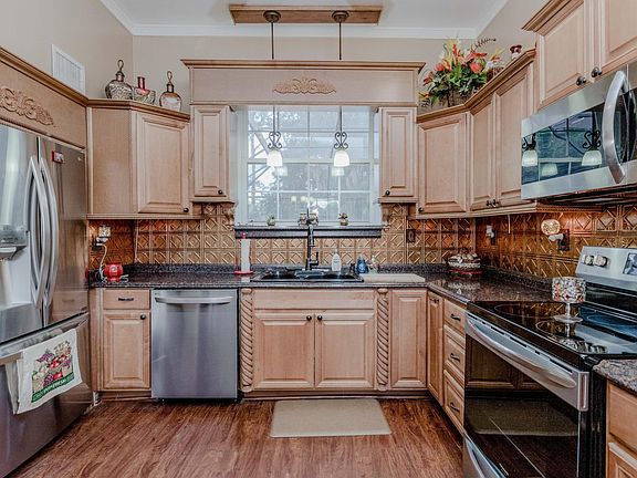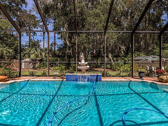 You have got to see this amazing 4 bedroom/3 bathroom pool home in Grove Park. The wide open floorplan is perfect for entertaining family and friends while overlooking the large screened in crystal clear salt water heated pool. One of the few homes in our area with a heated salt water pool, nice sized backyard, plus backing up to a wooded preserve. Salt water pool eliminates most of the pool expenses associated with a chlorine pool and is super easy to maintain. All 3 bathrooms have been updated and remodeled. Tons of storage. Here's your chance to live in beautiful home without all the expenses of an HOA. Home has 2 owner suites and an office. Comes with the refrigerator and washer and dryer. Space for parking a boat or RV on the side of the home.
