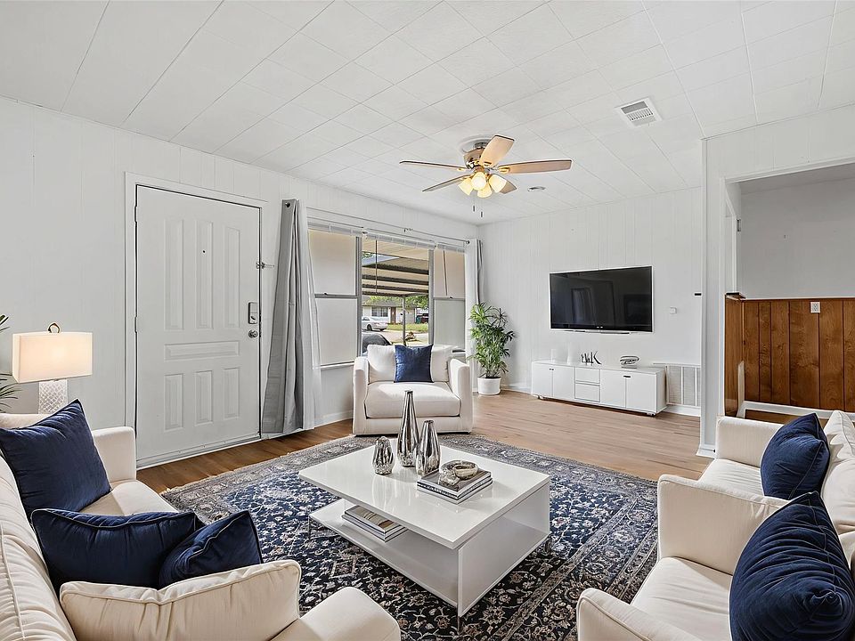 We're calling this one "Bijou Bungalow": If you're just starting out, or looking to downsize, this could be THE ONE. Clean modest villa will impress with new roof and new HVAC system in 2025. Home has been cared for and touched up to keep it fresh and clean. Large yard - front and back, covered back patio and "Bijou" still has a garage for storage, parking, tools, yard equipment, or whatever you'd like to have there. The best thing is...it fits into the budget. Lots of large windows give natural light; kitchen is bright and has neutral counter tops. Luxury laminate floors throughout, with new carpet in bedrooms and extra room. Paint has also been refreshed inside and out. Don't miss the Biggest Little Surprise on 1109 Pauline Ave. Buyer should measure rooms for exact measurements.