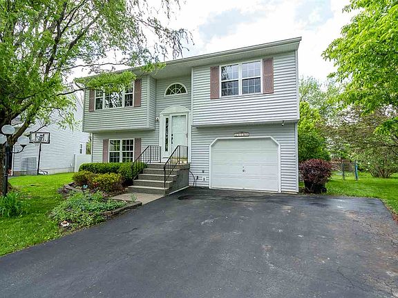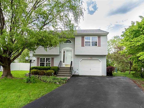 Wow! Such a beautiful raised ranch set back on a quiet cul-de-sac in a great neighborhood close to conveniences. Updates include a brand new roof (30-year shingles), new water heater, new kitchen appliances, new flooring, fresh paint, more! Great floorplan with two bedrooms and a full bathroom on the top floor, and another bedroom with half bathroom and laundry room on the lower level. You'll love the layout of the living room, kitchen and dining area with vaulted ceiling and skylights, and sliders opening to the deck. The family room hosts a gas fireplace, great to cozy up to in the winter months, and another set of sliding glass doors that lead to a covered deck overlooking the large fenced yard. Large shed, attached garage and spacious closets provide abundant storage. "Welcome home!"