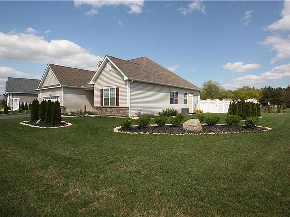 Beautiful 3 bedroom, 2 bath RANCH in Palmer Township on a nicely landscaped corner lot! LOW HOA FEES $300 PER YEAR! Enter the this Woodbury floorplan to beautiful hardwood floors, 2 bedrooms & 1 full bath, an amazing open concept floorplan complete with living area, dining area & kitchen that boasts natural light from windows complimented by custom blinds. Gas fire place provides ambiance while a gourmet kitchen is accented with beautiful cabinetry, countertops, pantry and GE stainless steel appliances. Enjoy private, fenced backyard views from the breakfast area or head to the backyard patio with deployable awning perfect for morning coffee & tea. Head back inside to find a large private master bedroom, his-and-her walk-in closets, master bath with dual sinks and private water closet. Entry to the laundry room, huge unfinished basement and 2-car garage meet your storage needs. Backyard shed & retention pond views great for bird watching completes this property so see it today!