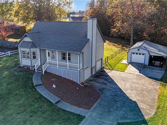 Dream Home Alert! This immaculate 3 bed, 2 bath two-story beauty has it all! Enjoy cozy nights by the stunning rock fireplace and the convenience of a main-level primary suite with 2 closet, tv stays in primary! The kitchen comes fully equipped—all appliances stay, including the fridge, washer & dryer! Downstairs you’ll find a double garage plus a heated detached garage (14x32) with propane gas pack and extra carport space. All new vinyl siding and windows installed including outside garage 2014-2015. New roof 2022. Step outside to pristine landscaping, a brand-new back deck, and a fenced backyard perfect for pets or play. Move-in ready and beautifully maintained—this one won’t last!