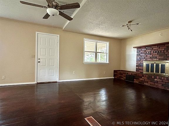 Back on the Market due to buyer's financing falling through. Cute remodeled home set on a nice private lot. Great location on the south side of town within walking distance to downtown. Very spacious living area with brick wood-burning fireplace. Hardwood flooring in living area and bedrooms. A spacious kitchen with stainless appliances and new butcher-block countertops. Bathroom has new tiled bath surround, flooring, vanity & fixtures. New vinyl windows, light fixtures, ceiling fans and paint throughout. Great interior laundry room with plenty of space. Just off the laundry room is a nice storage area. Exterior has fresh paint, newer roof and will have new gutters installed prior to closing. Just off the back of the home is a storm cellar.