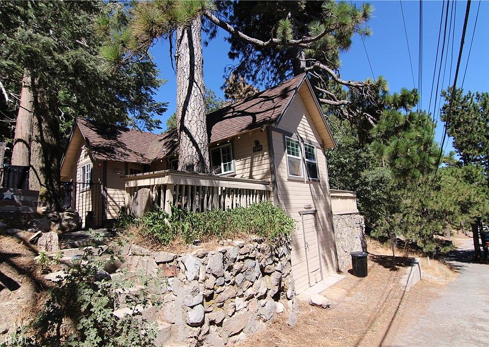 Welcome to the Bear Foot Den, a charming mountain cottage perfect for vacationers and full-time residents alike! Nestled in an ideal location with easy access to local neighborhoods, this delightful home features shiplap walls and hardwood floors plus many adorable vintage touches. Enjoy meals in the cozy dining nook with views of a picturesque rock wall and surrounding trees. A spacious loft provides additional sleeping or storage space, and the stunning views of the forest are truly breathtaking. After a day of exploring, unwind in the dry sauna or the hot tub on the enclosed patio. The detached guest house is perfect for hosting friends and family. There is room to expand in the laundry/build-up area that can be accessed from the living room or outside. Sale includes the adjacent lot of 2,900 sf. Plus, furnishings, a sled, and a canoe are all included!