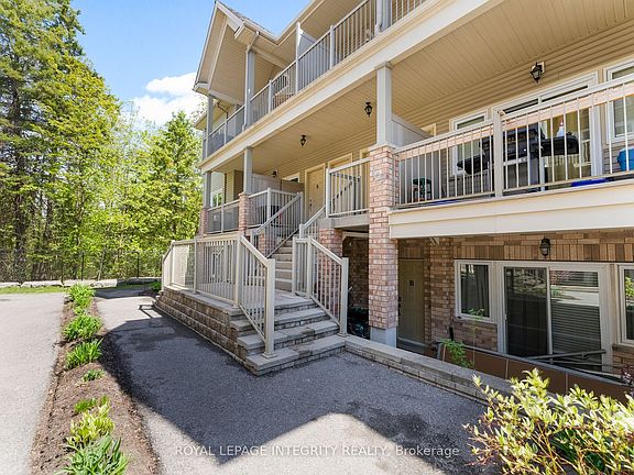 Welcome to carefree condo living in the highly sought-after community of Jackson Trails! This beautifully maintained upper unit is flooded with natural light thanks to its abundance of windows and soaring vaulted ceilings. With no rear neighbours and views of the trees, it offers a peaceful retreat just steps from all the amenities you need. The open-concept living and dining area features a full wall of windows, creating an airy, sun-filled space perfect for relaxing or entertaining. Rich hardwood flooring flows throughout the main living areas and both bedrooms, adding warmth and elegance. The kitchen is both stylish and functional, with stainless steel appliances, a sleek glass tile backsplash, a breakfast bar for casual dining, and convenient in-unit laundry access. The primary bedroom is a serene escape with a generous walk-in closet and a patio door that opens to tranquil treetop views, no rear neighbours to disturb your privacy. The second bedroom is also a great size, making it ideal for guests, a home office, or a cozy retreat. The large main bathroom offers both comfort and style, featuring a separate soaker tub and a walk-in shower. Off the living room, step out onto your private balcony, the perfect spot for morning coffee or evening unwinding. Located just minutes from shopping, restaurants, banking, schools, and transit, this home offers the best of both comfort and convenience. Whether you're a first-time buyer, downsizer, or investor, this bright and spacious unit checks all the boxes. Don't miss this opportunity to own in one of Stittsville's most popular neighbourhoods!