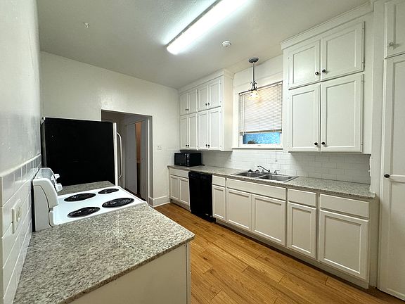 Aug '26 Pre-lease! TWO homes on 1 lot, 7 bedrms / 3.5 baths total. Blue front house has 4 large bedrooms, wood floors, fireplace, washer/dryer, dishwasher, small back deck, fenced yard & tiled bathrooms. Back pink house is 3 bedrooms & full bath upstairs, large balcony. Half bath & modern kitchen with upgraded appliances and cozy living space down. 2 car garage, 1 car carport & 2 add'l off-street parking spots. Walk to campus! One of the last larger properties left in West Campus.