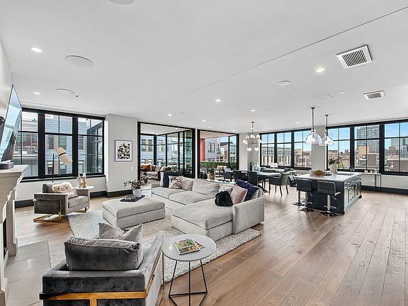 Step into sophisticated elegance with this impeccably designed residence located on the highly desirable southeast corner of The Hayden, one of West Loop's most prestigious buildings. This stunning 3200 sqft home offers an open-concept layout with wide-plank hardwood floors, 10-foot ceilings, and wall-to-wall windows that flood the space with natural light. The expansive living area, anchored with a limestone gas fireplace, flows seamlessly into a formal dining room, perfect for entertaining. The gourmet kitchen is a chef's dream, featuring custom Bentwood cabinetry, exquisite quartzite countertops, and top-of-the-line Wolf and Sub-Zero appliances, including a built-in espresso machine and wine fridge. Enjoy easy access to the terrace via a Nana wall system, perfectly blending indoor and outdoor living. The luxurious primary suite is a true retreat, boasting skyline views, custom walk-in closets, and a serene ensuite bathroom with Calcutta marble counters, a freestanding soaking tub, and a separate glass-enclosed steam shower. Two additional ensuite bedrooms offer ample closet space and equally stunning finishes, making this home as functional as it is beautiful. Additional features include a powder room with brass accents, a large laundry room with full-sized LG washer and dryer, automated Lutron shades, and Sonos sound system. This exclusive building offers 24-hour door staff, storage, and two heated indoor parking spaces. Just steps from Chicago's famed Restaurant Row, boutique shopping, and vibrant nightlife, 1109 W Washington Blvd #6C offers unparalleled luxury in one of the city's most sought-after neighborhoods.
